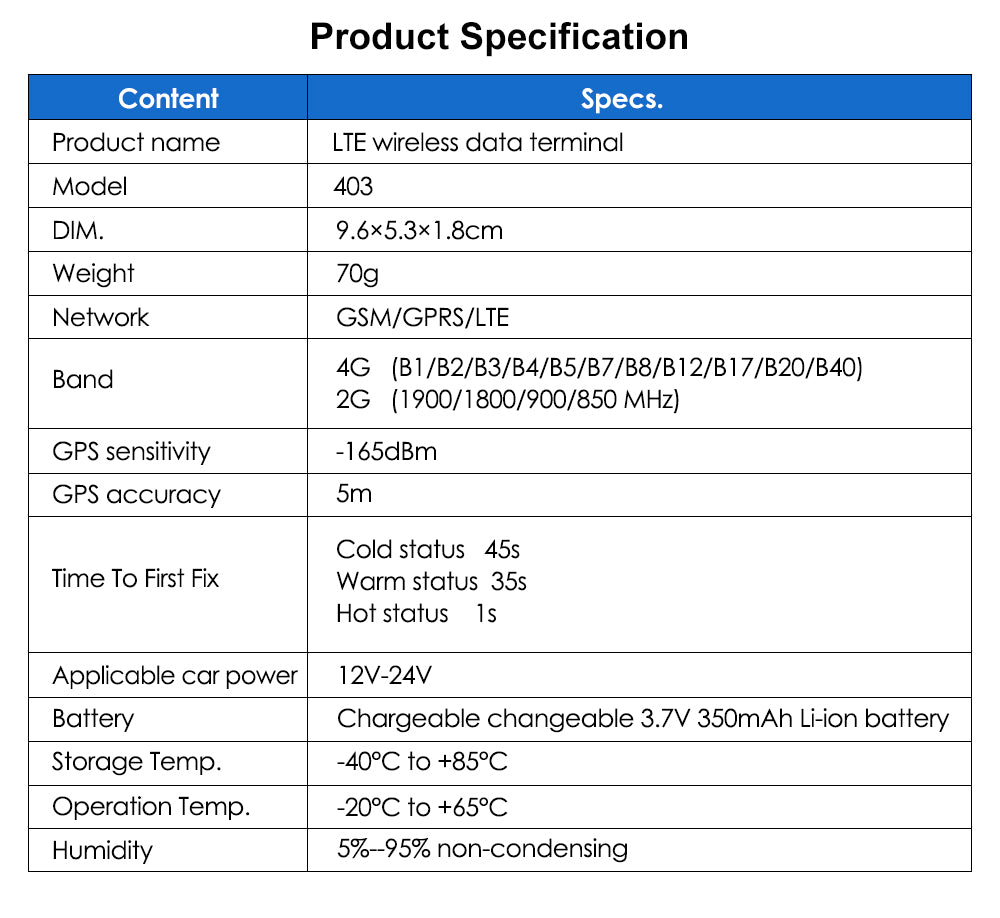 Coban 403AB 4G Vehicle GPS Tracker Waterproof IP65 Wired Fleet Management Door Open Alarm