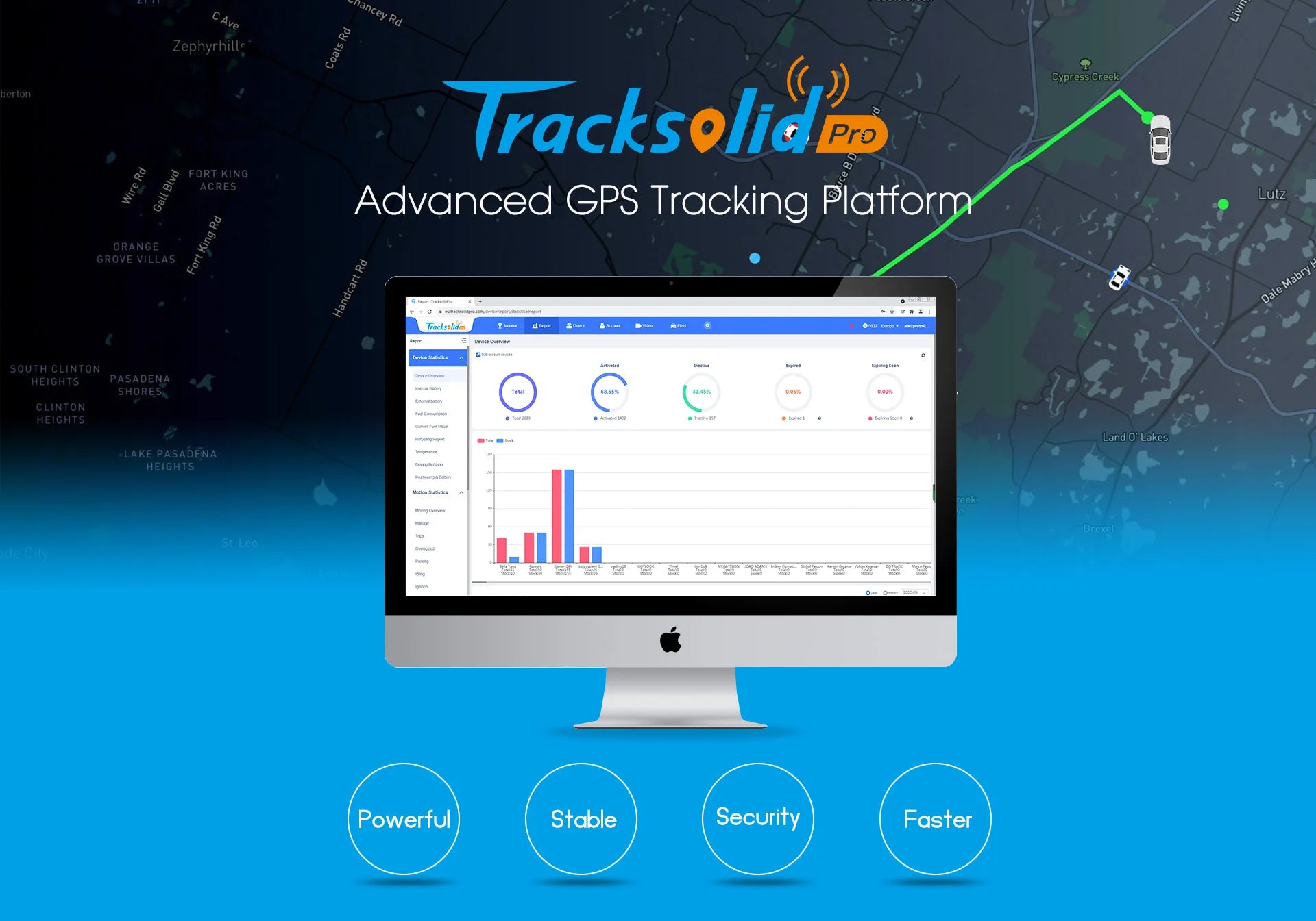 TracksolidPro is a SaaS platform for GPS tracking and video monitoring. Much more powerful and professional: 2,000,000+ Devices integrated | 800,000+ Daily active devices | 150+ Supported devices | 220+ Countries covered | 32+ Languages Supported with APP "TracksolidPRO" for Andorid and IOS.