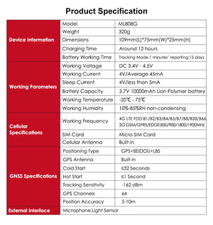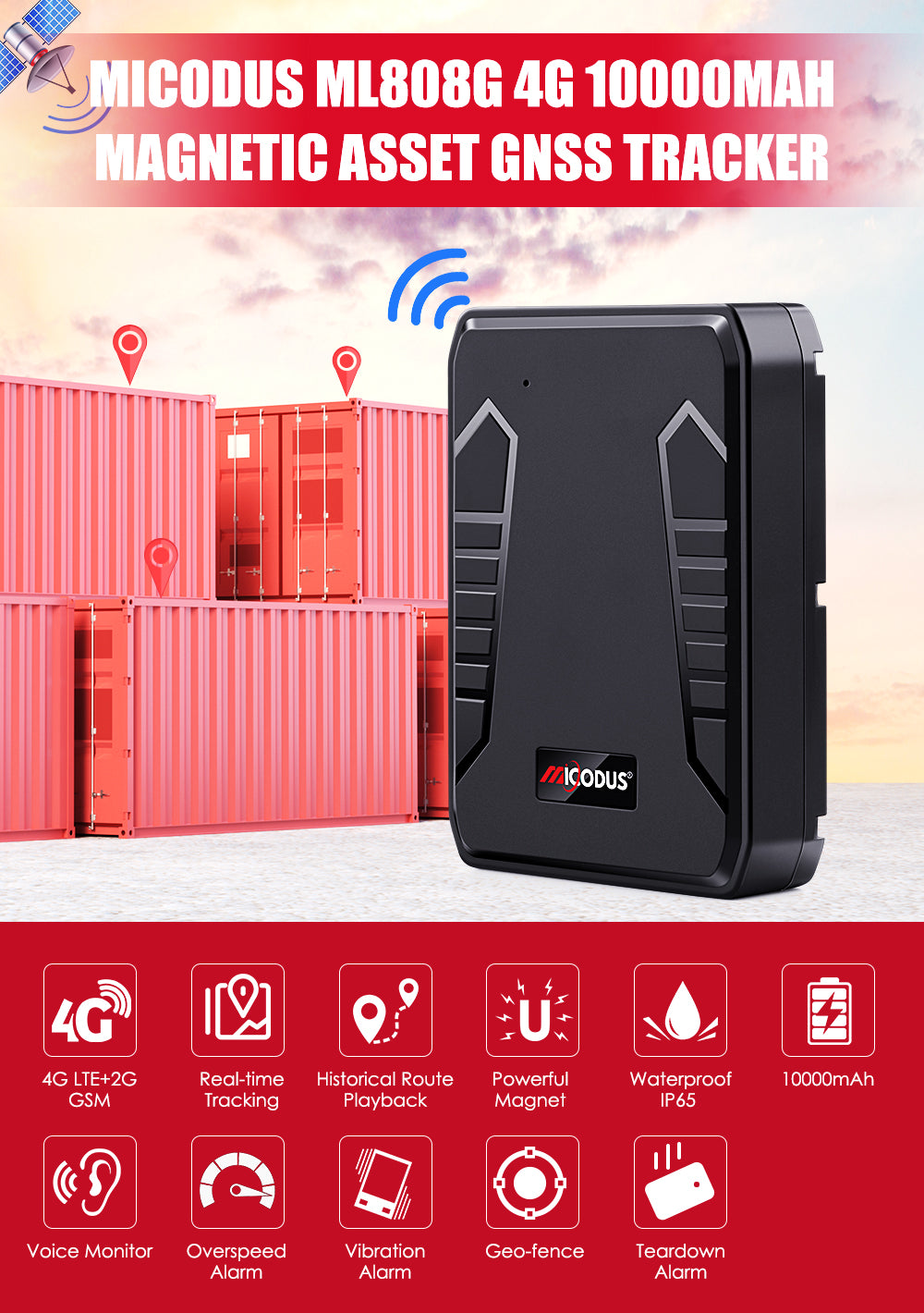 MiCODUS ML808G Car 4G GPS Tracker Magnet Asset GPS Tracking Device 10000Mah Vehicle Waterproof