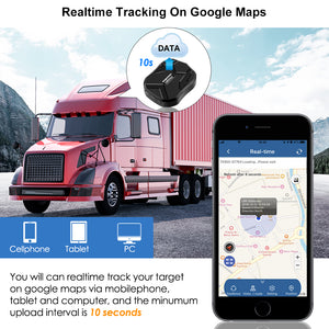 You will can realtime track your target on google maps via mobilephone,tablet and computer,and the minumum upload interval 10 seconds