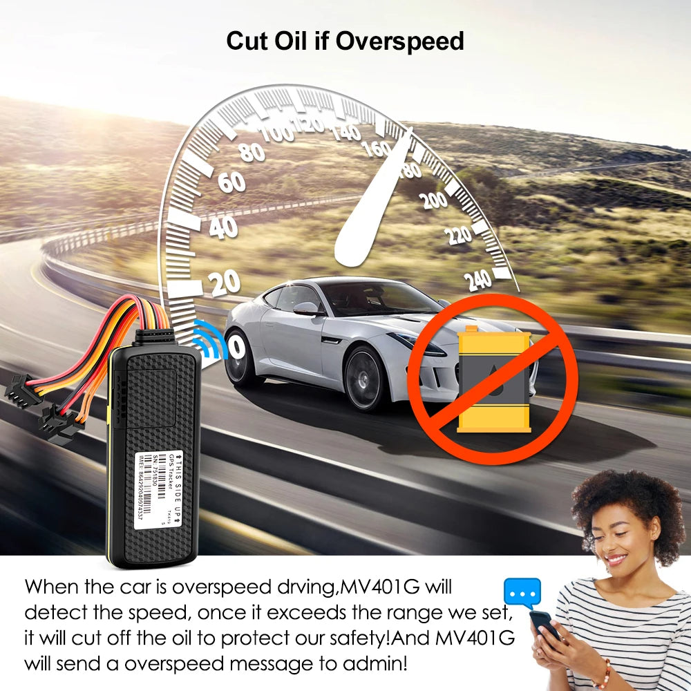 When the car is overspeed drving,TK419 will detect the speed, once it exceeds the range we set, it will cut off the oil to protect our safety!and TK419 will send a overspeed message to admin!