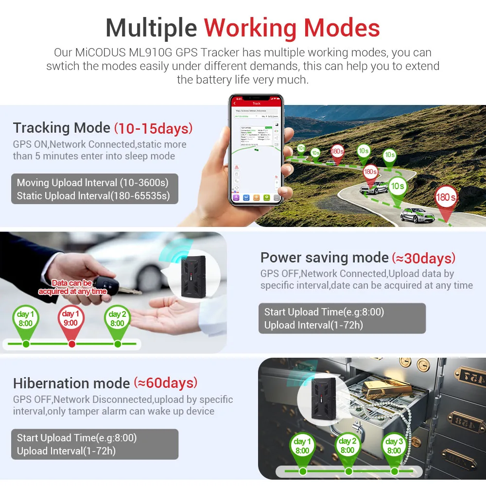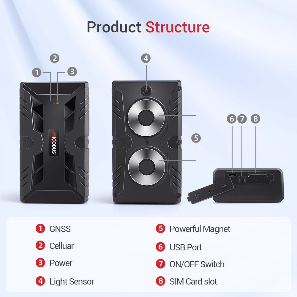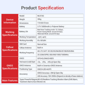 MiCODUS Car GPS Tracker 4G ML910G 10000mAh Superstrong Magnetic Car Tracker Voice Monitor Move Vibrate Alert