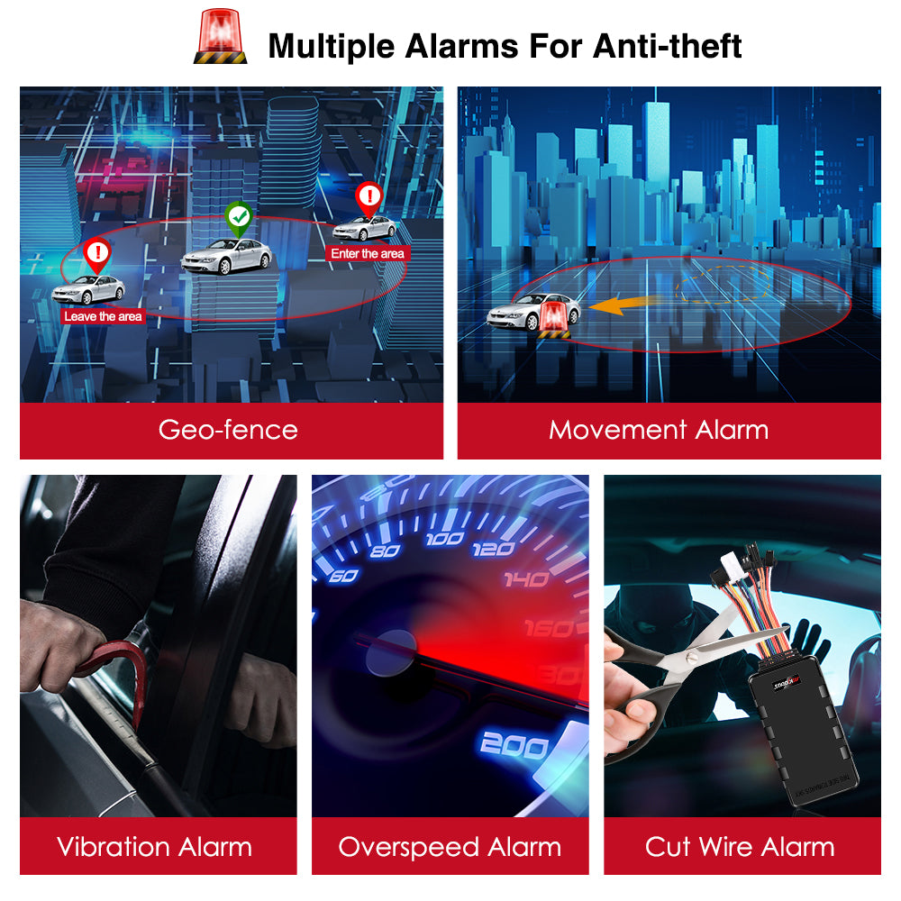 13. Multiple Alarms For Anti-theft: Vibration Alarm, Geo-fence, Shift Alarm, Cut Wire Alarm, Engine