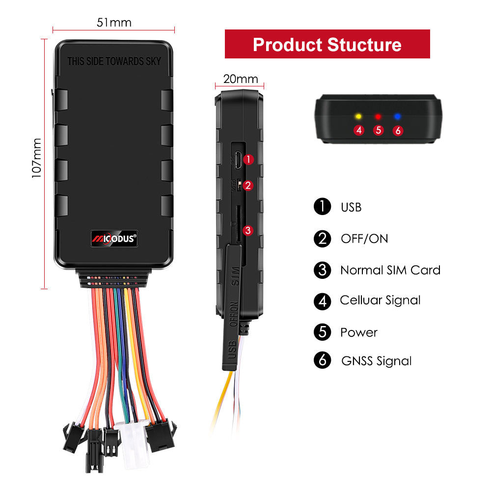 MiCODUS Car GPS Tracker 4G MV501G 1000mAh Voice Monitor SOS Remotely Cut Off Fuel Multi-alarms