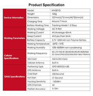MV501G working based on the GNSS system(GPS+GLONASS+BEIDOU), has no limit on the tracking distance. And you will can real time track your target on Google maps at anytime anywhere