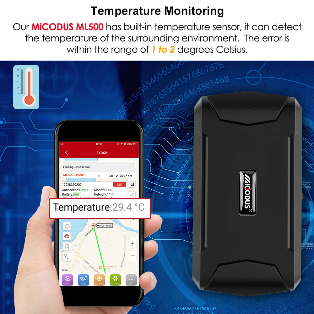 MiCODUS ML500 Magnetic 5000mAh GPS Tracker Temperature Voice Monitor GPS Locator