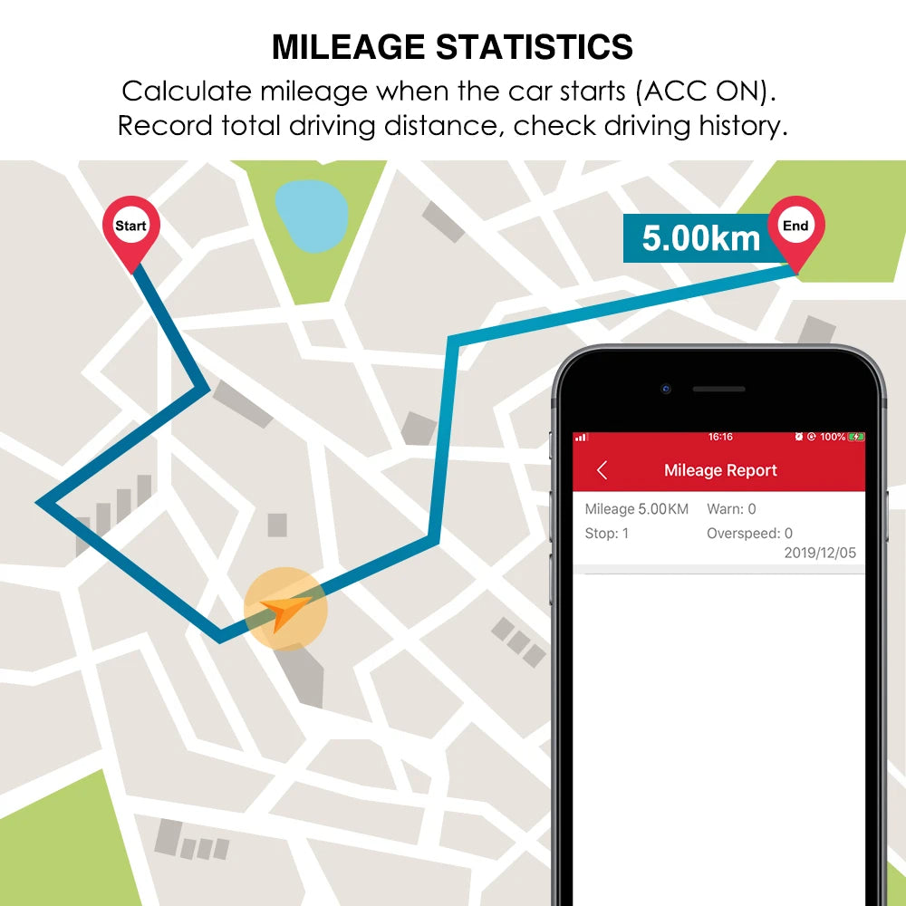 Calculate mileage when the car starts (ACC ON). Record total driving distance, check driving history.