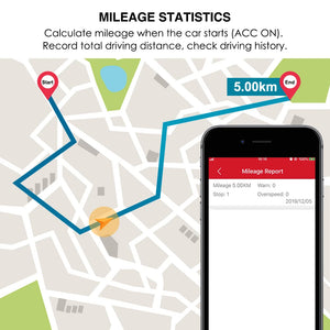 Calculate mileage when the car starts (ACC ON). Record total driving distance, check driving history;