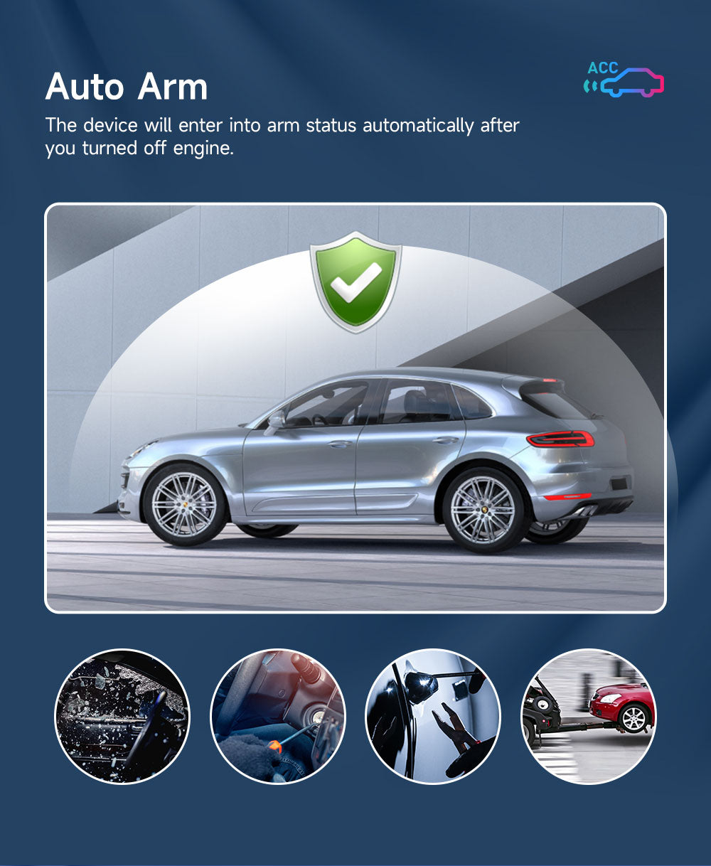 After enabled this function, you can preconfigure an alarm movement distance, then once your car was moved by this distance under engine off status then you will can get alarm information via SMS, Call and APP.