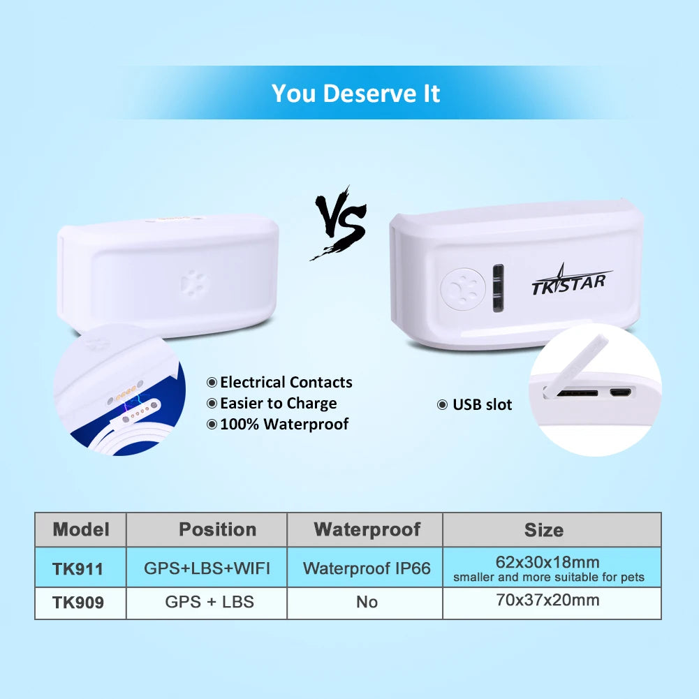 TKSTAR TK911 Mini Pet GPS Tracker Dog Cat GPS Collar Waterproof IP66 500mAh Realtime Track Geofence