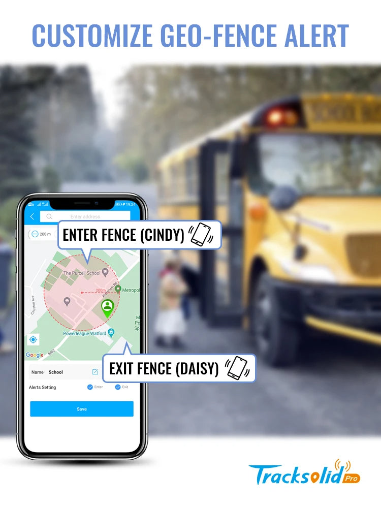- Geo-Fence: A virtual area set on platform by yourself, you'll be informed when the person crossing its boundary.