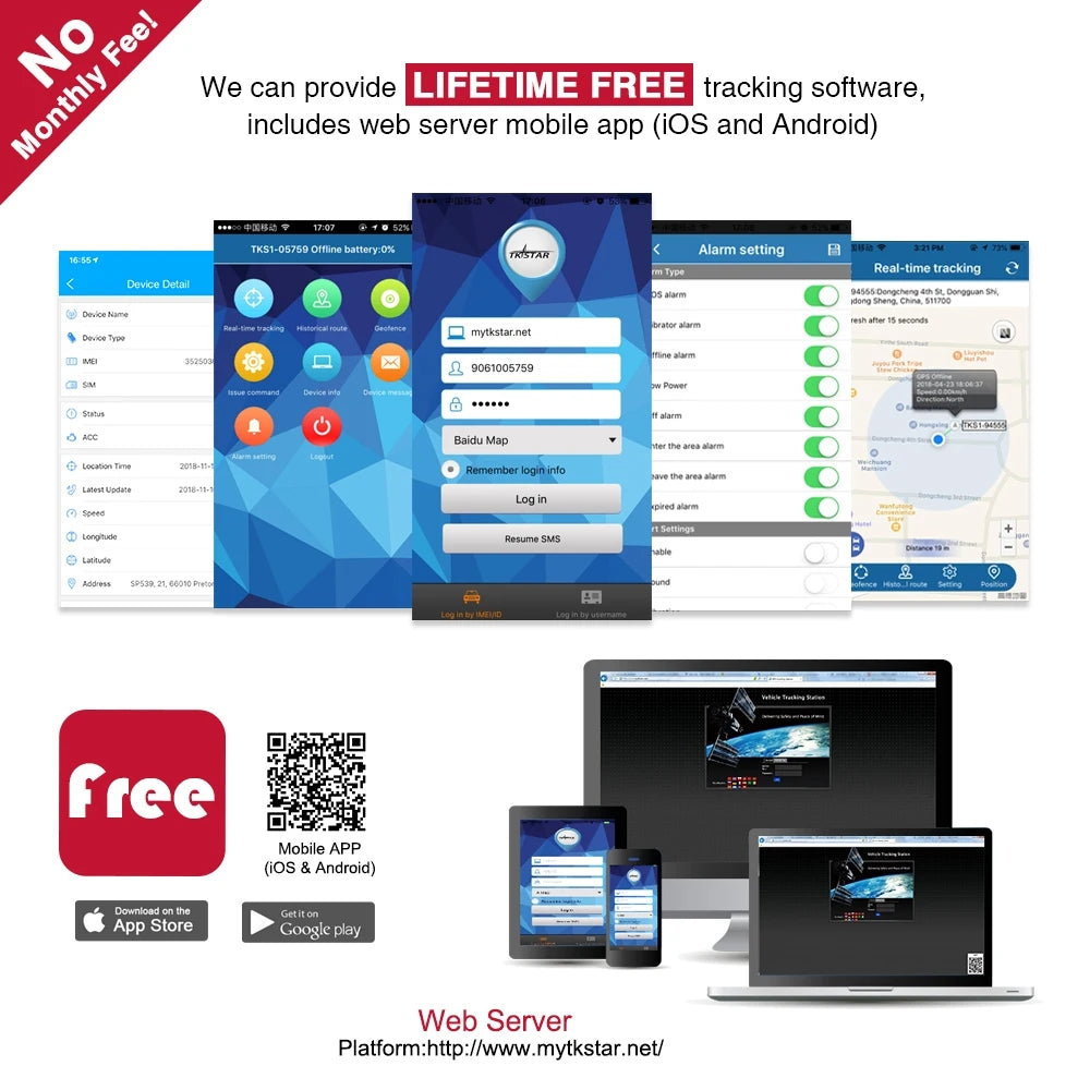 - Free life time Winnes Ios APP & Android APP , Mytkstar.net PC Platform track view Web Server : The winnes APP and mytkstar.net web server free use for life.do not need pay the platform every months.