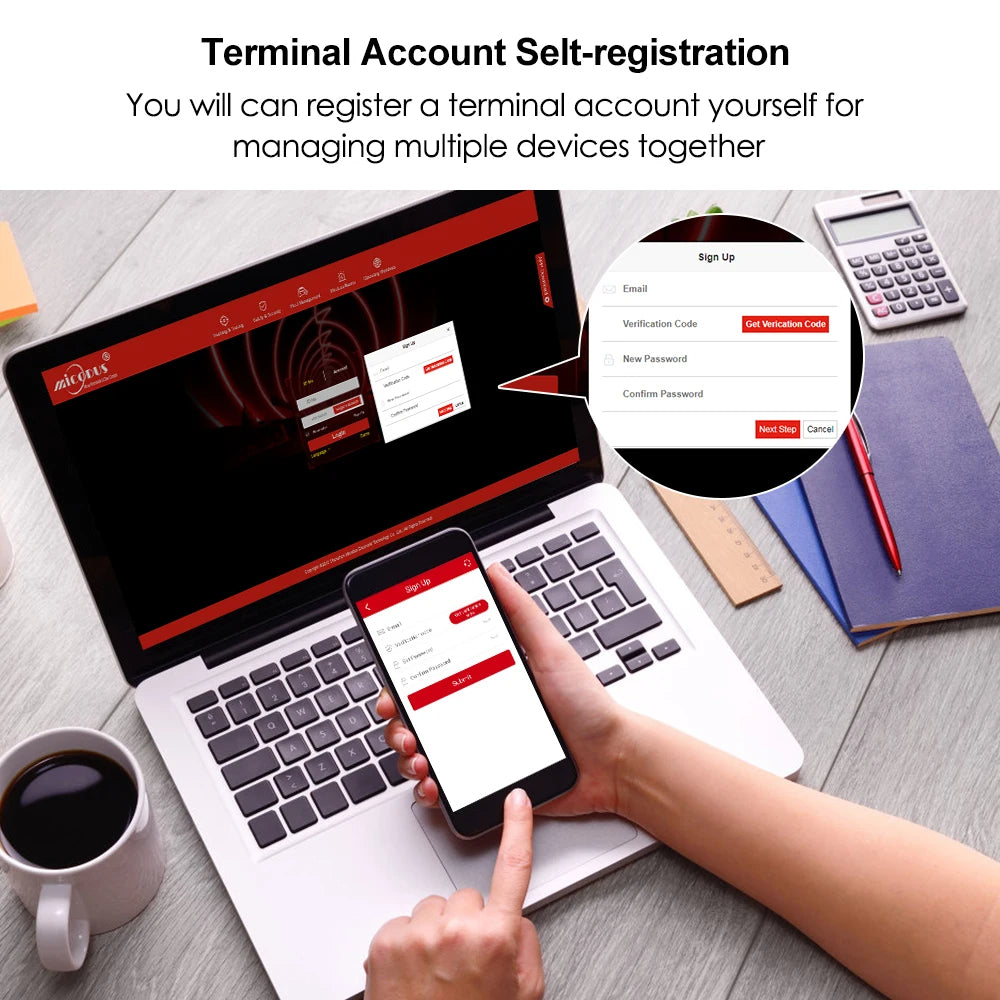 You will can register a terminal account yourself for managing multiple devices together.