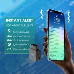 Instant alerts for atypical events such as car fault, overspeed, ignition detection, collision, geo-fence entry/exit, etc.