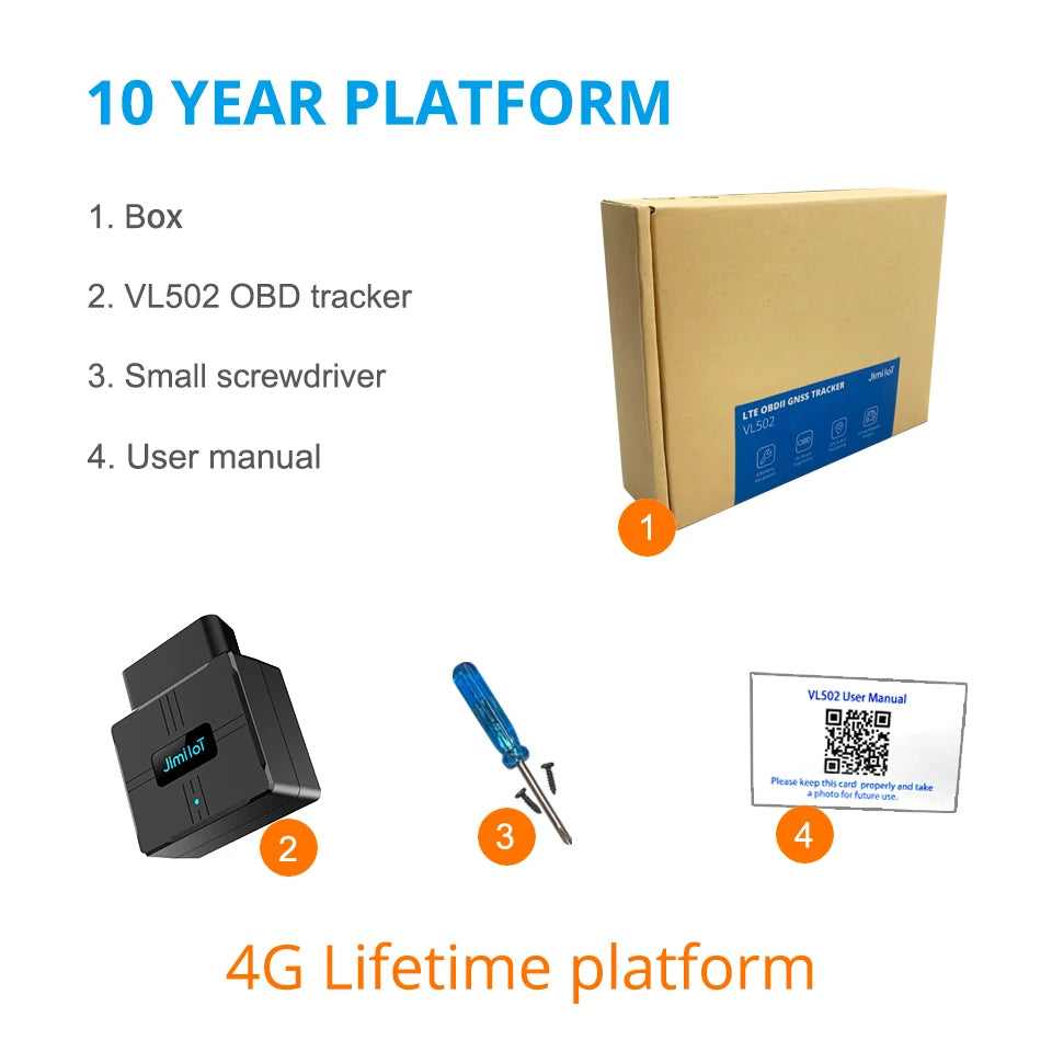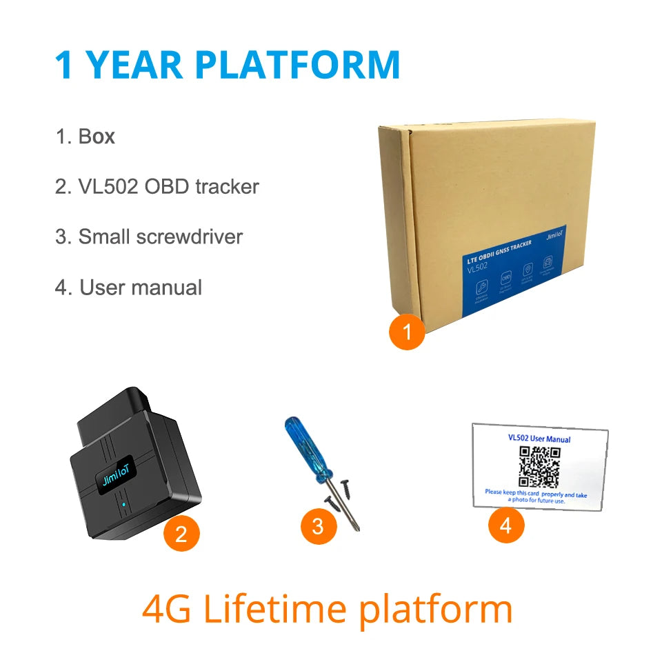 JimiloT VL502 OBD2 Bluetooth 4G GPS Tracker with Canbus Diagnostic Plug & Play Alarm Real-time Tracking